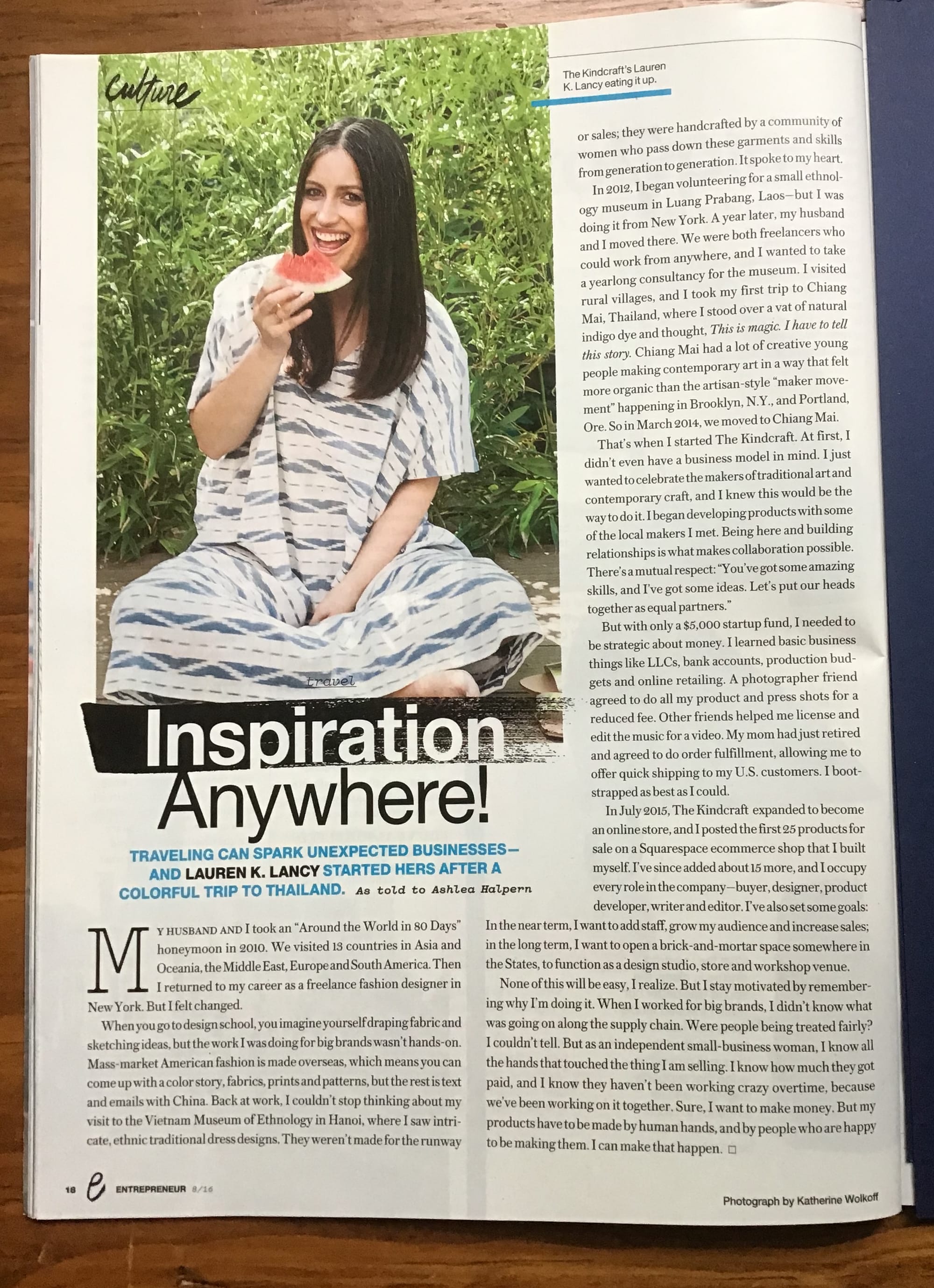 Lauren Lancy is an apparel and lifestyle product designer and trend forecaster who has worked in New York City, London, Florence, Luang Prabang, Chiang Mai, Jaipur, Dhaka and is now based in Los Angeles. Focused on culture-specific craft, design, and sustainability, Lauren created THE KINDCRAFT in 2014 while living in Southeast Asia working with indigenous textile artisans.