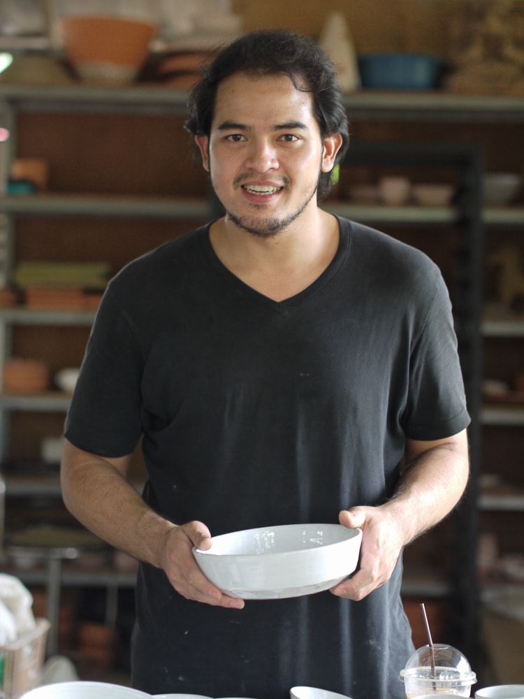 While ceramics are a traditional art in Jirawong's culture, his functional pottery is more contemporary than the pieces the region is known for: