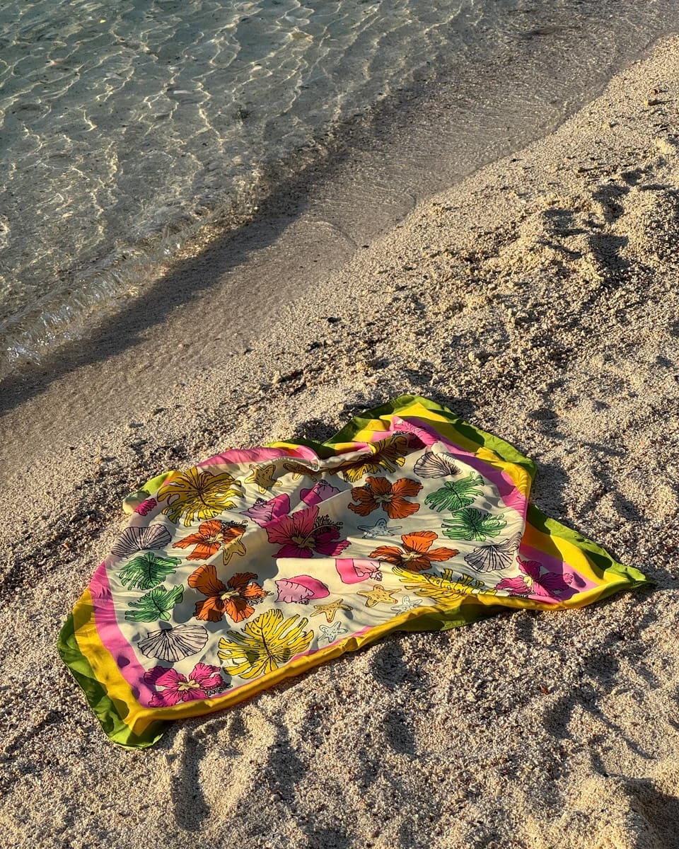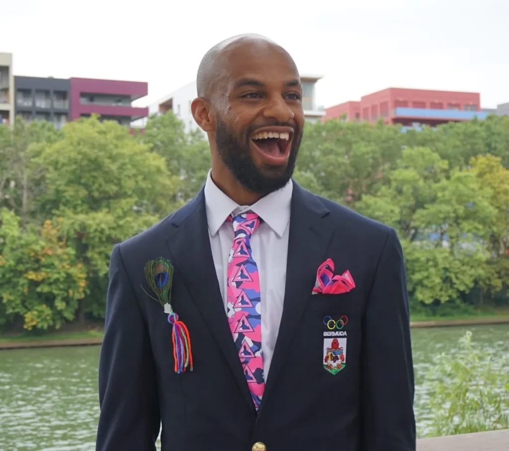 Multi-disciplinary artist Courtney Clay studied across the U.K at the University of Creative Arts Rochester, Kingston School of Art, and the University of the Arts London, yet her work throughly captures the spirit and colors of Bermuda. Her distinctly Bermudian aesthetic landed her an invitation to design ties, scarves, and pocket squares for Team Bermuda during the opening ceremony of the 2024 Olympic Games in Paris. Clay's print designs for Team Bermuda featured abstract swirls of pure blue ocean water, like waves and tides, and bright pink sandy beaches.