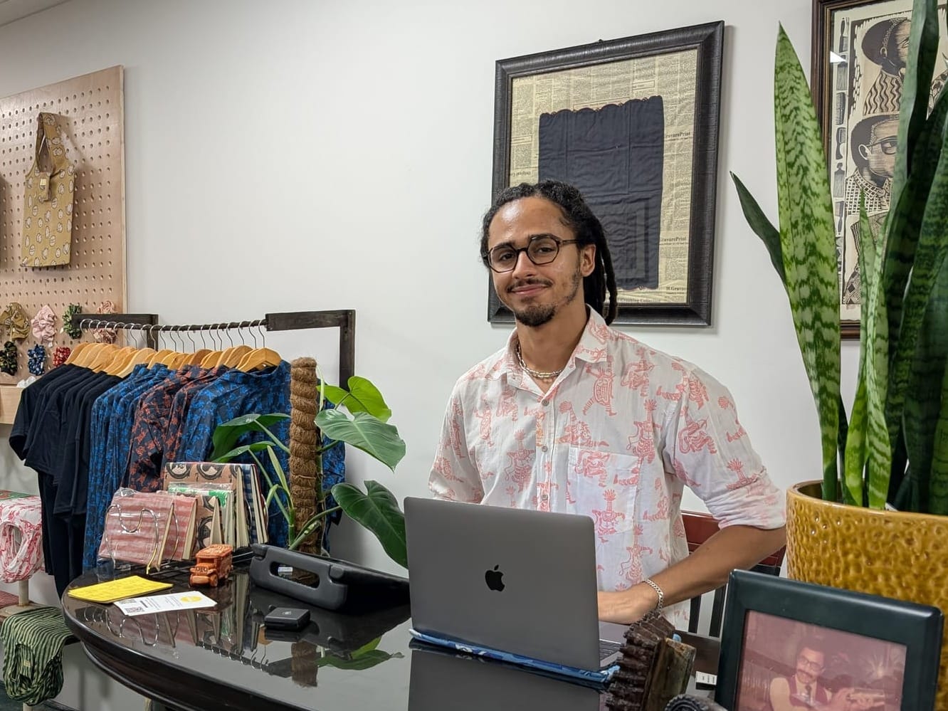 Jordan Carey is a designer and artist who was born and raised in Bermuda. Even after living in the United States and gradating from the Maine College of Art in 2019 with a bachelor’s degree in fashion and textiles, Carey's art remains heavily influenced by his Bermudian upbringing. Working with naturally-dyed textiles that feature island-themed prints, his art is rooted in Bermudian craft traditions like dyeing and kite-making.