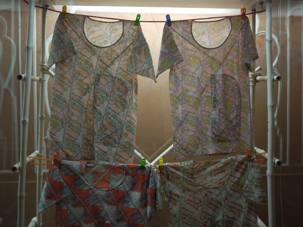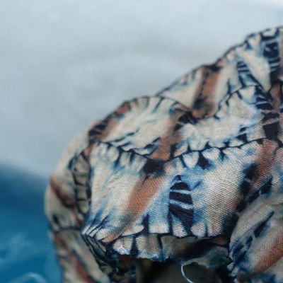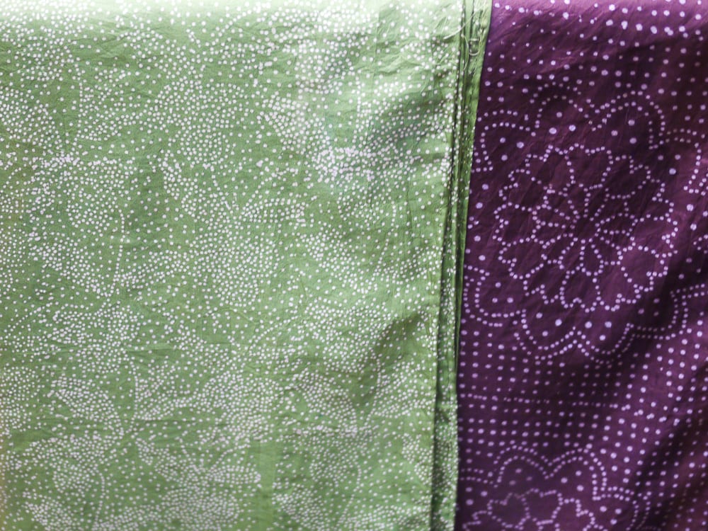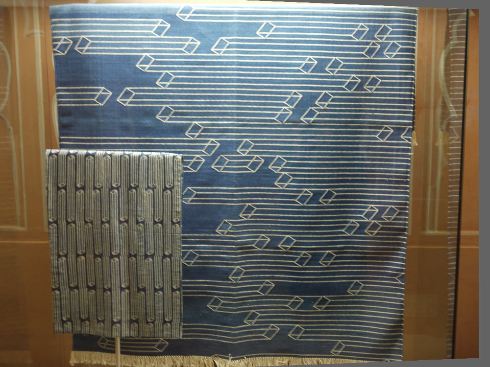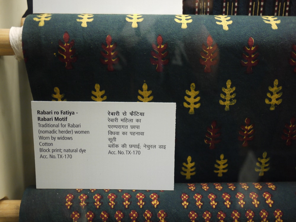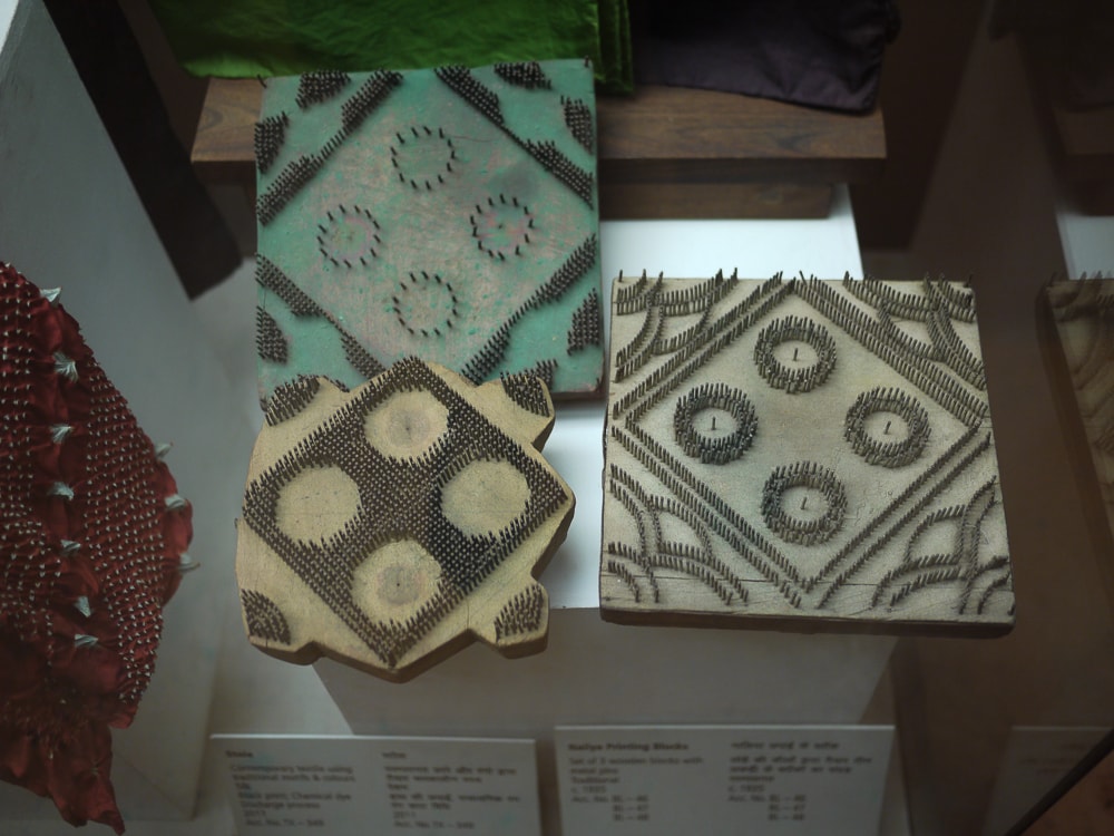 The Anokhi collection focuses on contemporary hand printed textiles such as the first two images below by American designer Rebecca Layton in an exhibition titled 'From a Modern Perspective'. The museum also showcases traditional and historical works by region, specifically from Rajasthan and Gujarat in Northern India. Note the bandhani-like pieces (bottom) that are discharge printed in Naliya (a village in Kutch, Gujarat) using a block with small metal pins that create the dot motif.