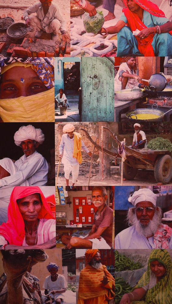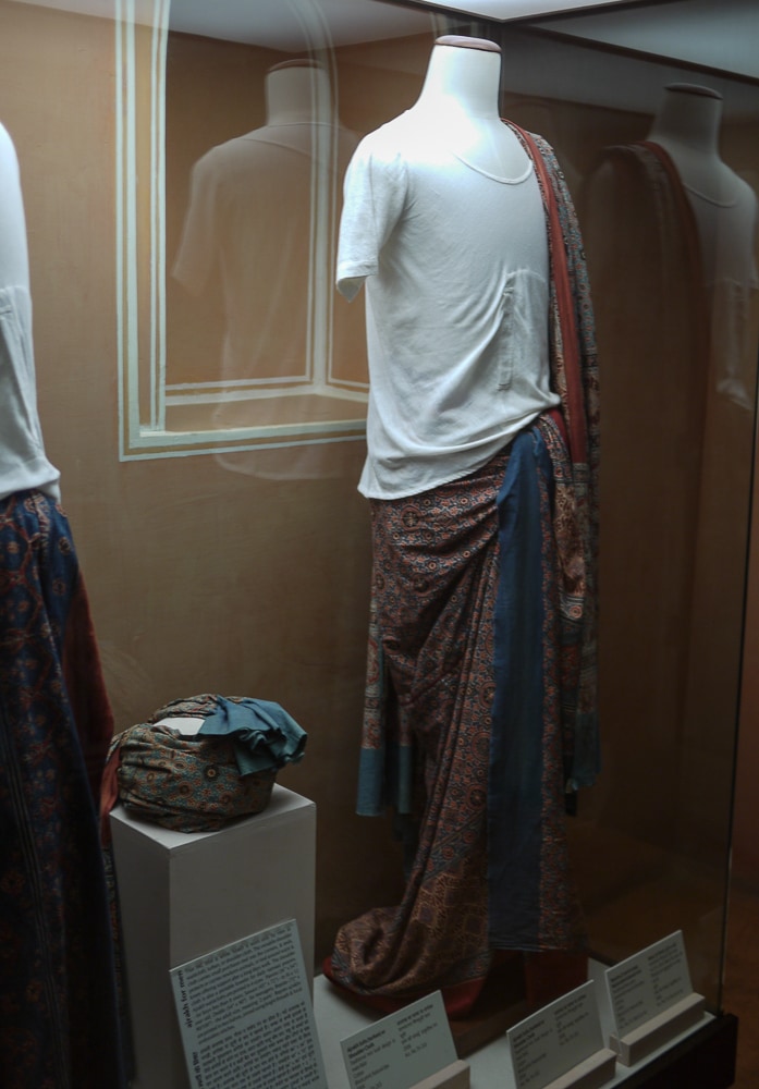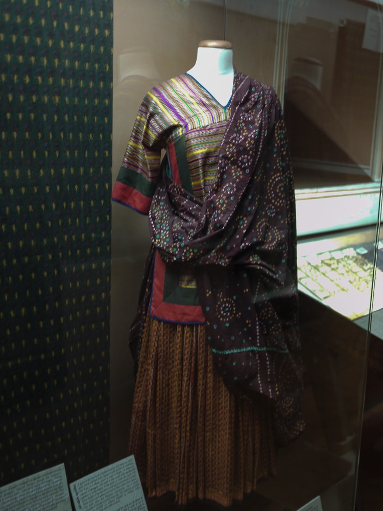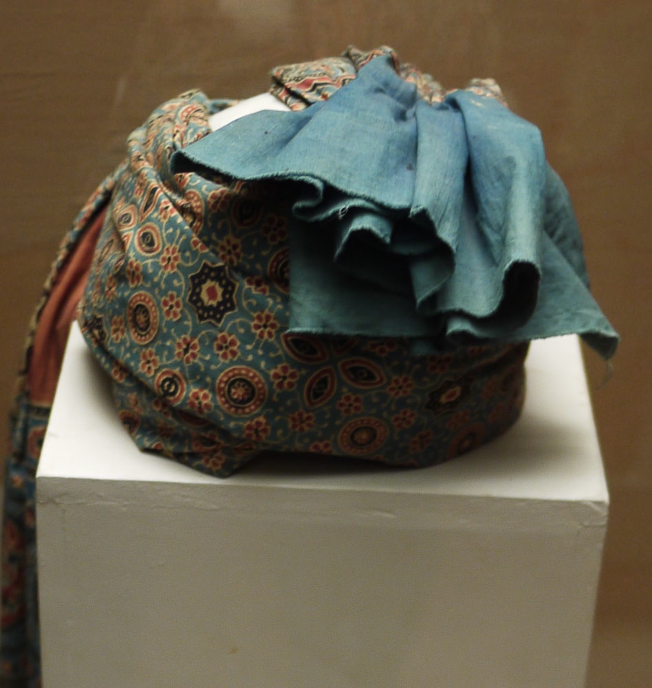 Here are some examples of hand printed textiles worn by the men and women of Northern India. Color choices, printing techniques, and motifs - often floral and geometric - identify the wearer's village, wealth, and marital status. Below are women's ensembles and, in the last two images, a man's outfit including a hand printed turban.