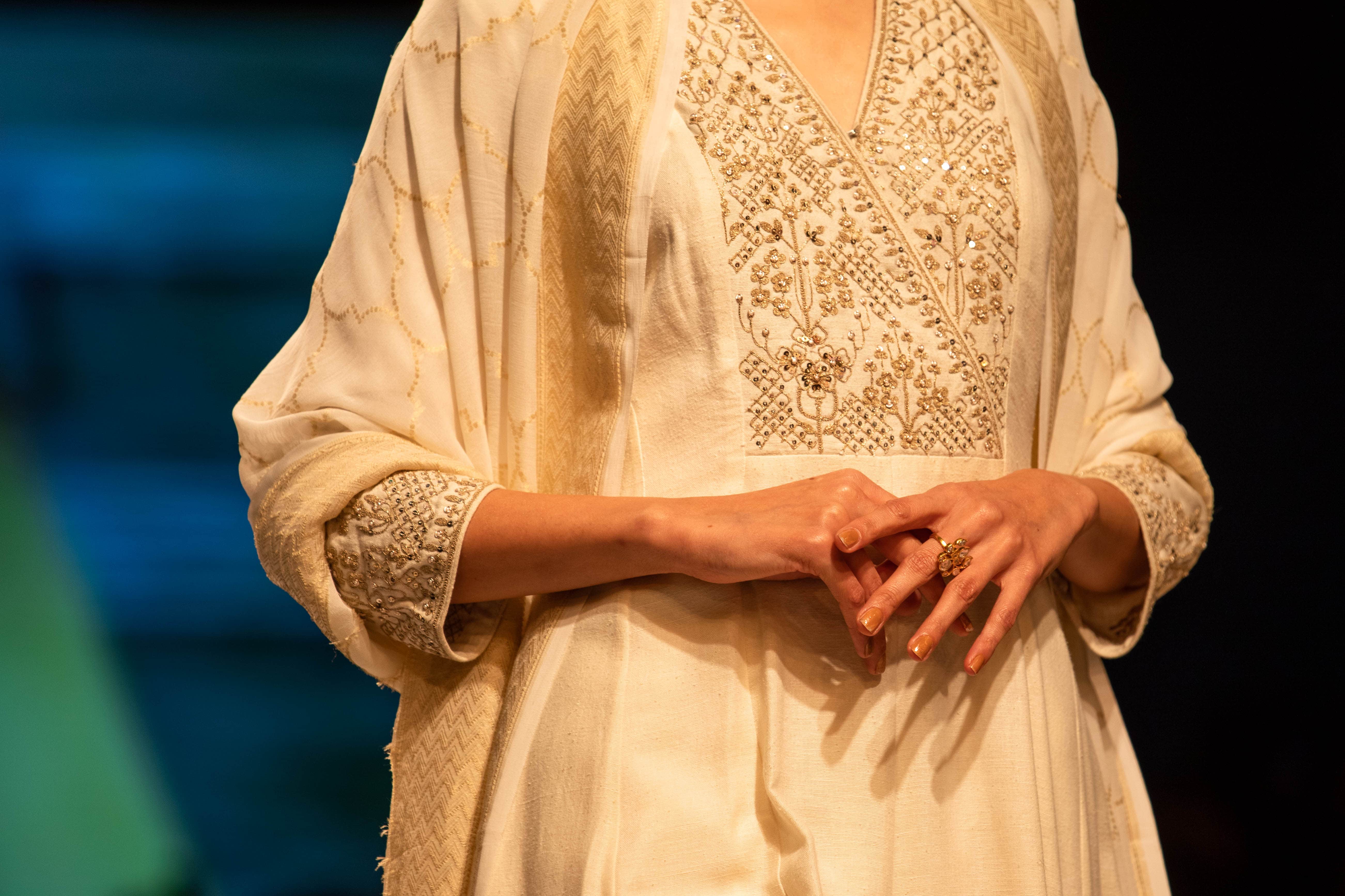 ‘Action Plan on North East India Report’ (APONIR) is a project that was launched at LFW for the fashion industry with an aim to strengthen the livelihoods of artisans by providing them with development support and market linkages. The achievements and interventions of the project made in marginalised handloom clusters in Assam in areas such as Barkhetri (Nalbari) and Rampur (Kamrup) towards sustainable production and development was presented in association with implementation partner GoCoop. There was a fashion showcase of special capsule collections developed by well known fashion brands such as Anita Dongre Grassroot and Raymond (in collaboration with Antar-Agni) of Eri and Muga textiles hand-woven by artisans in these clusters.