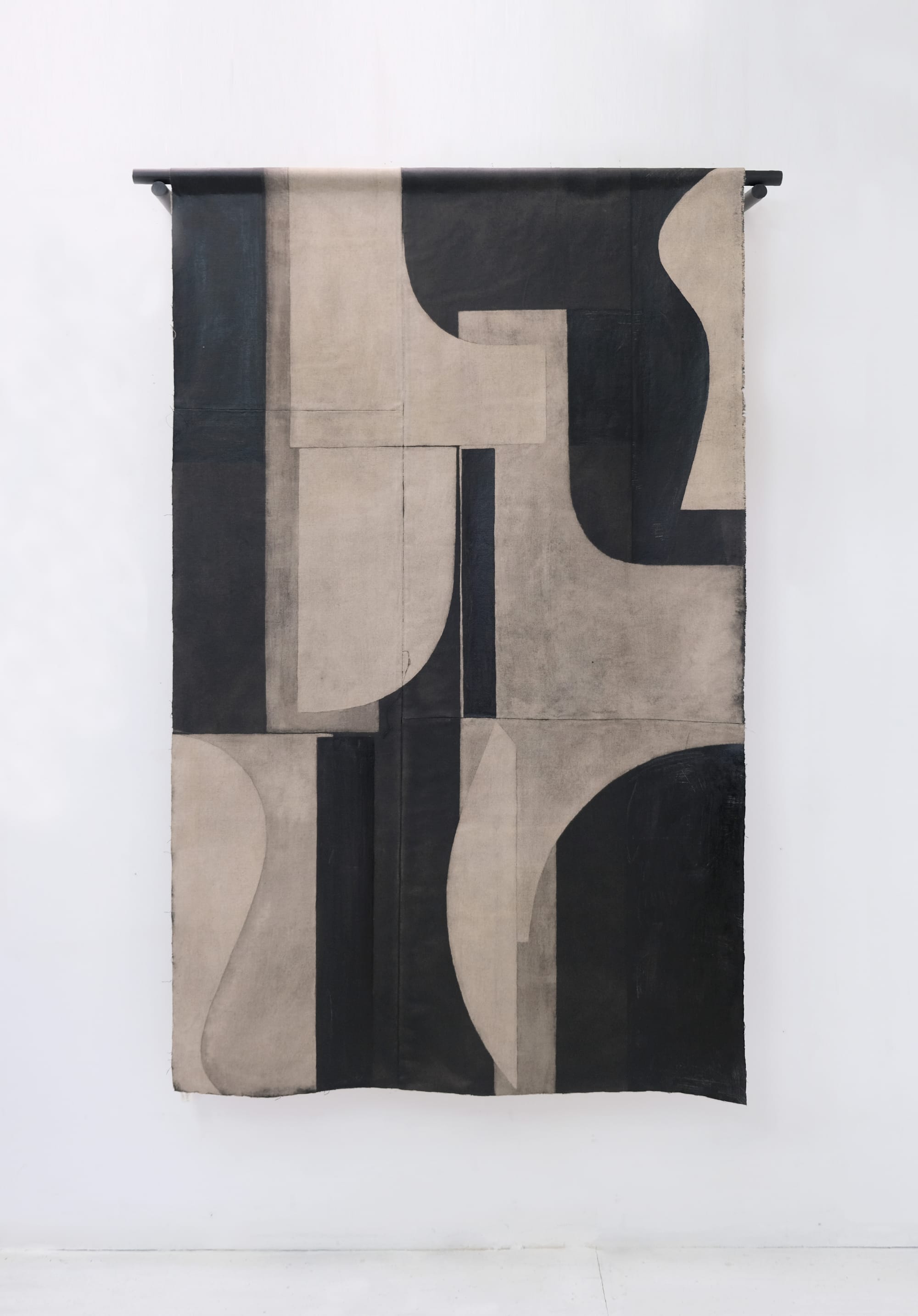 Known for her handmade ink textiles, Amélie Crepy presented her first-ever solo show during London Craft Week launching a new collection of upholstery fabrics. Hand-dyed in a biodegradable black color derived from plant-based pigments, Crepy's new collection is sustainably-made with flax that she processed and hand-dyed using foraged materials.
