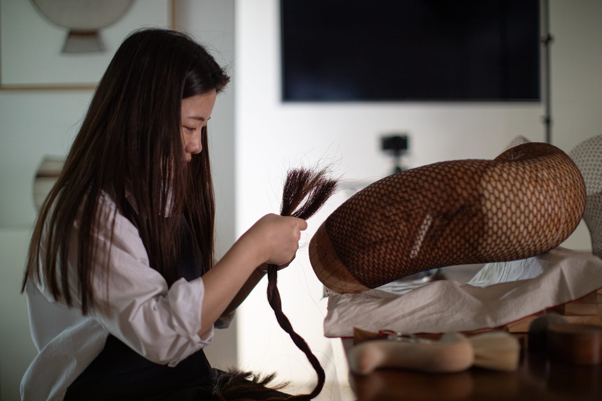 Dahye Jeong 'Living Lines' made with horsehair. Photos by Fiona Coleman. Dahye Jeong photo courtesy of Soluna Art Group.