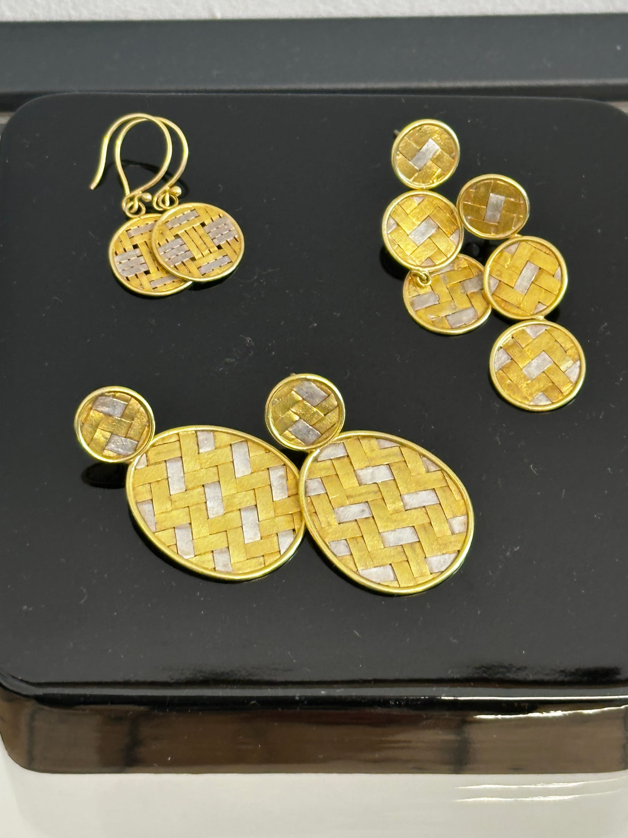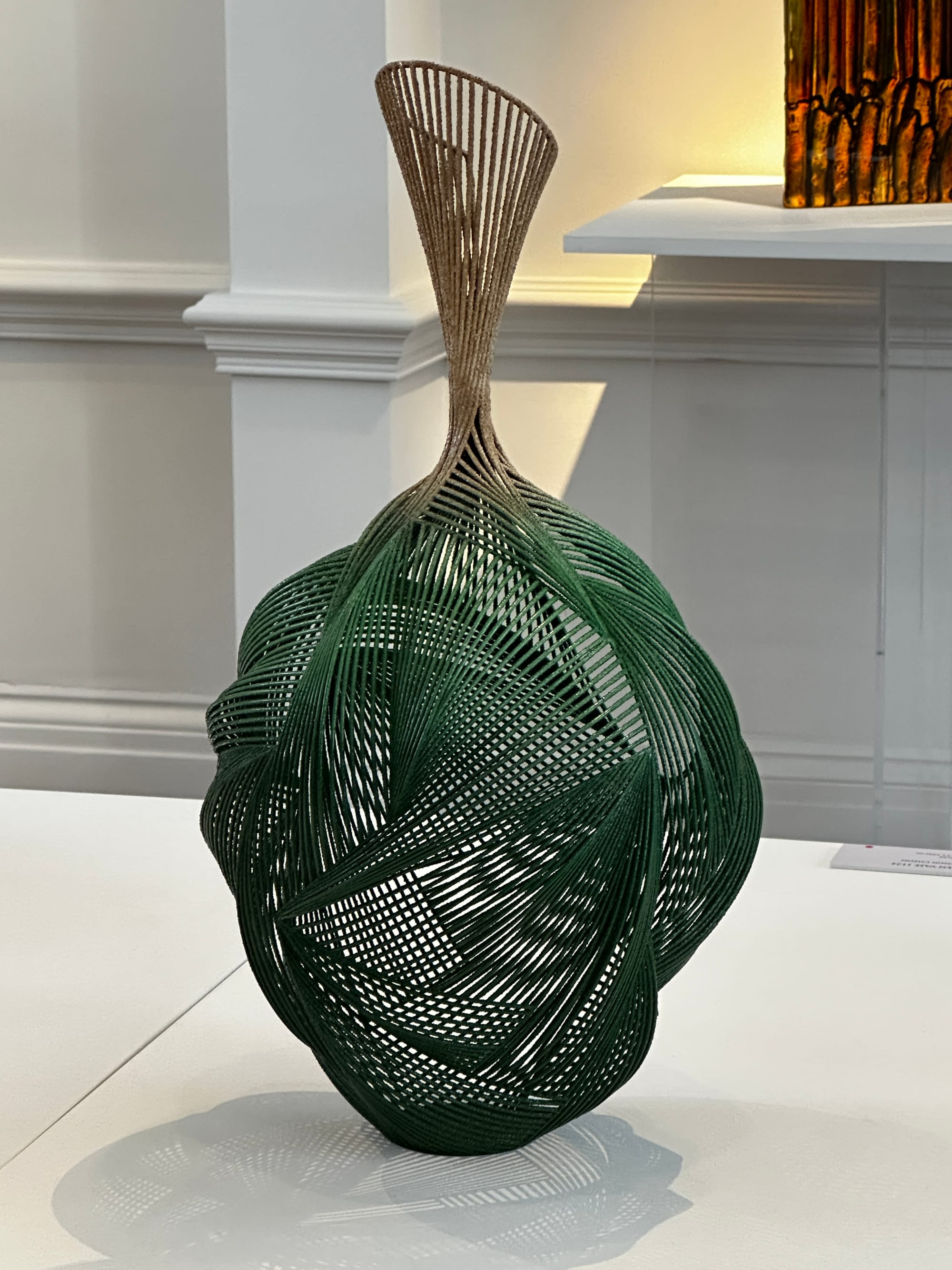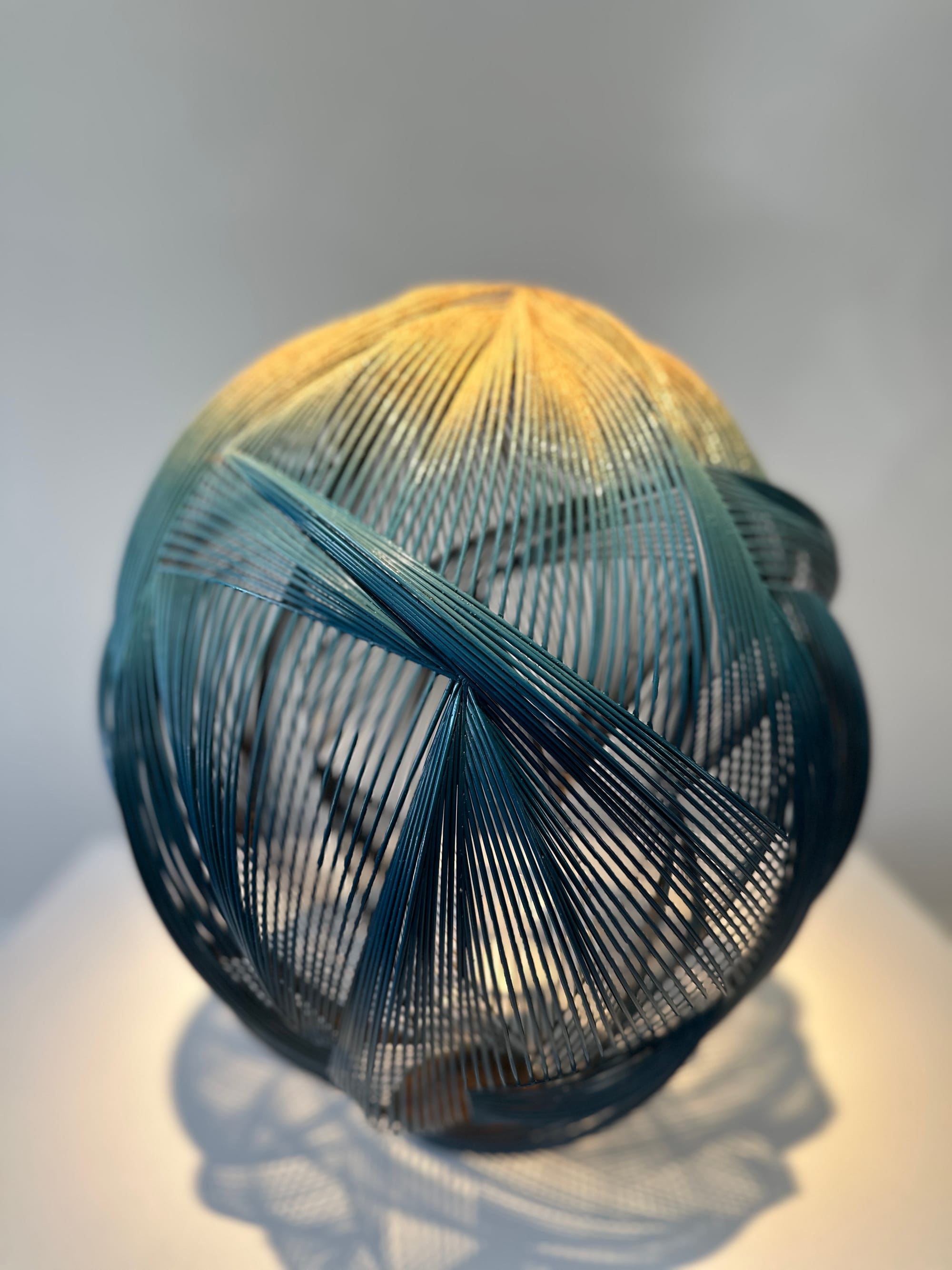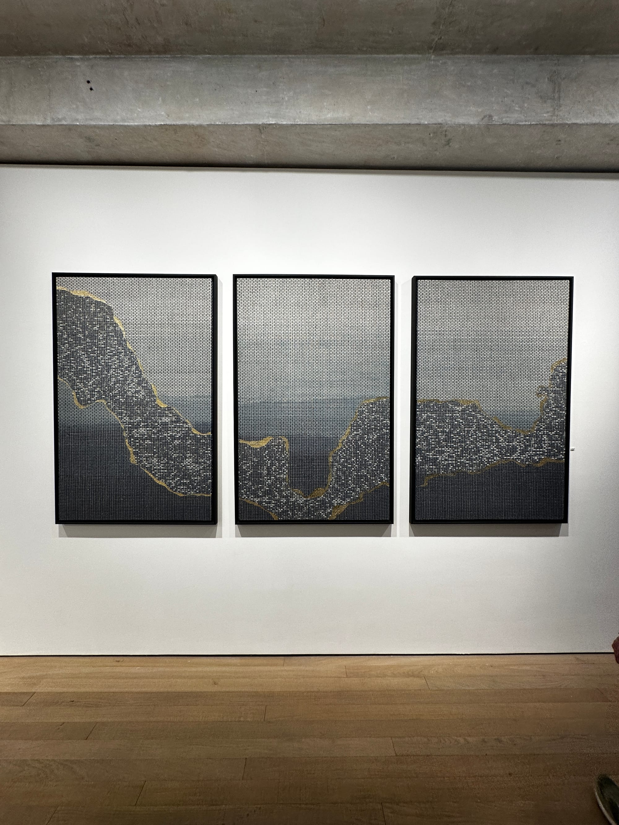 NM Art & Design featured the work of five artists in Mayfair at No. 9 Cork Street during London Craft Week. With themes around dialogue with nature, time, and transformation, textile artist Momoka Gomi stole the show. An artist who primarily works with recycled denim and silk yarn using a mechanical dobby loom in her Nottingham studio, Gomi exhibited a new triptych titled 'Recollection'. The hand-woven abstract landscape in blue and while with a flowing gold line hinted at horizons, mountains, rivers – or, perhaps, it suggests kintsugi, symbolizing the beauty of imperfection and resilience in repair. In any reading, the cotton, linen, silk and polyester textile art piece presents a timeless scene that invites personal interpretation.