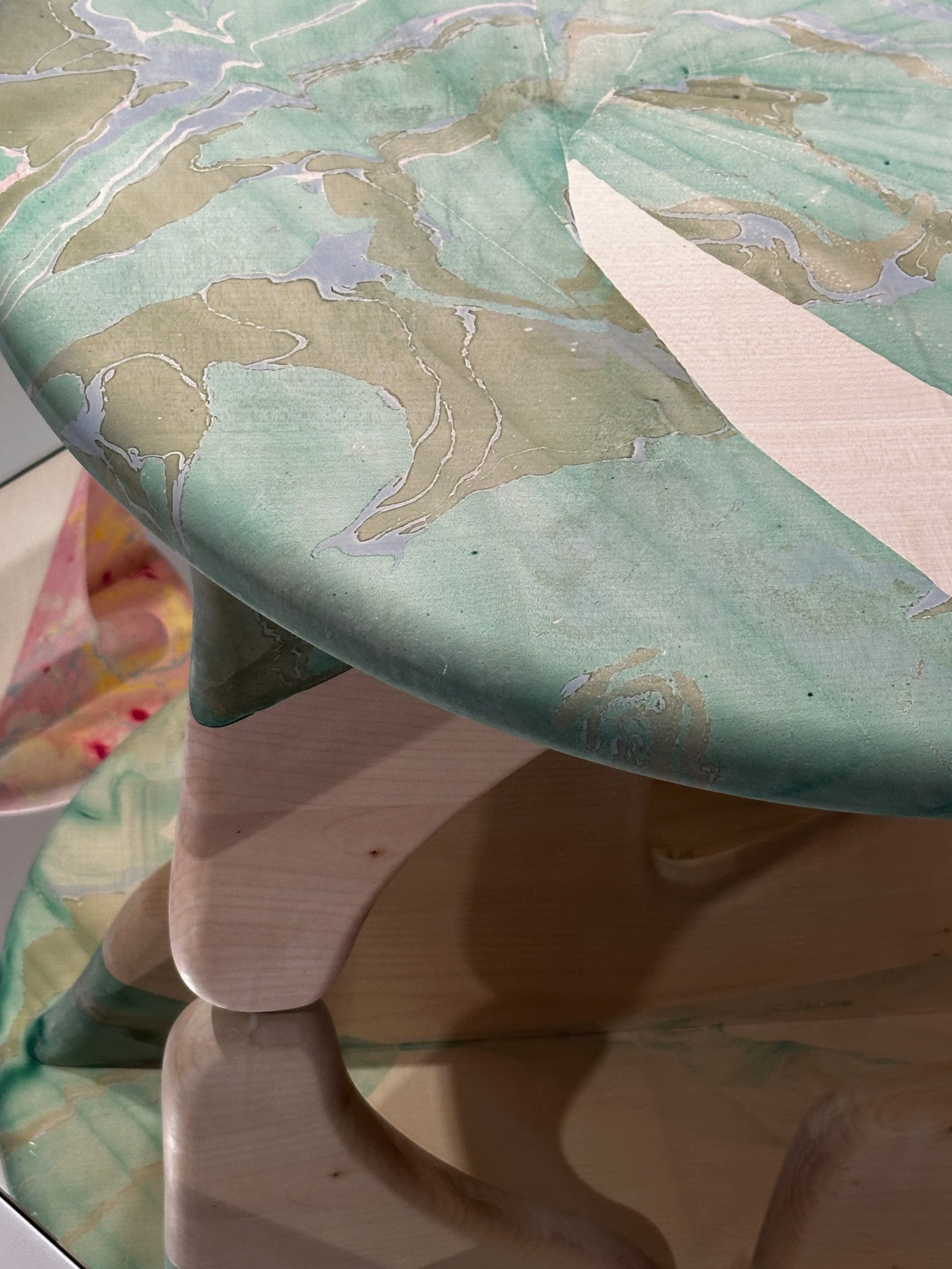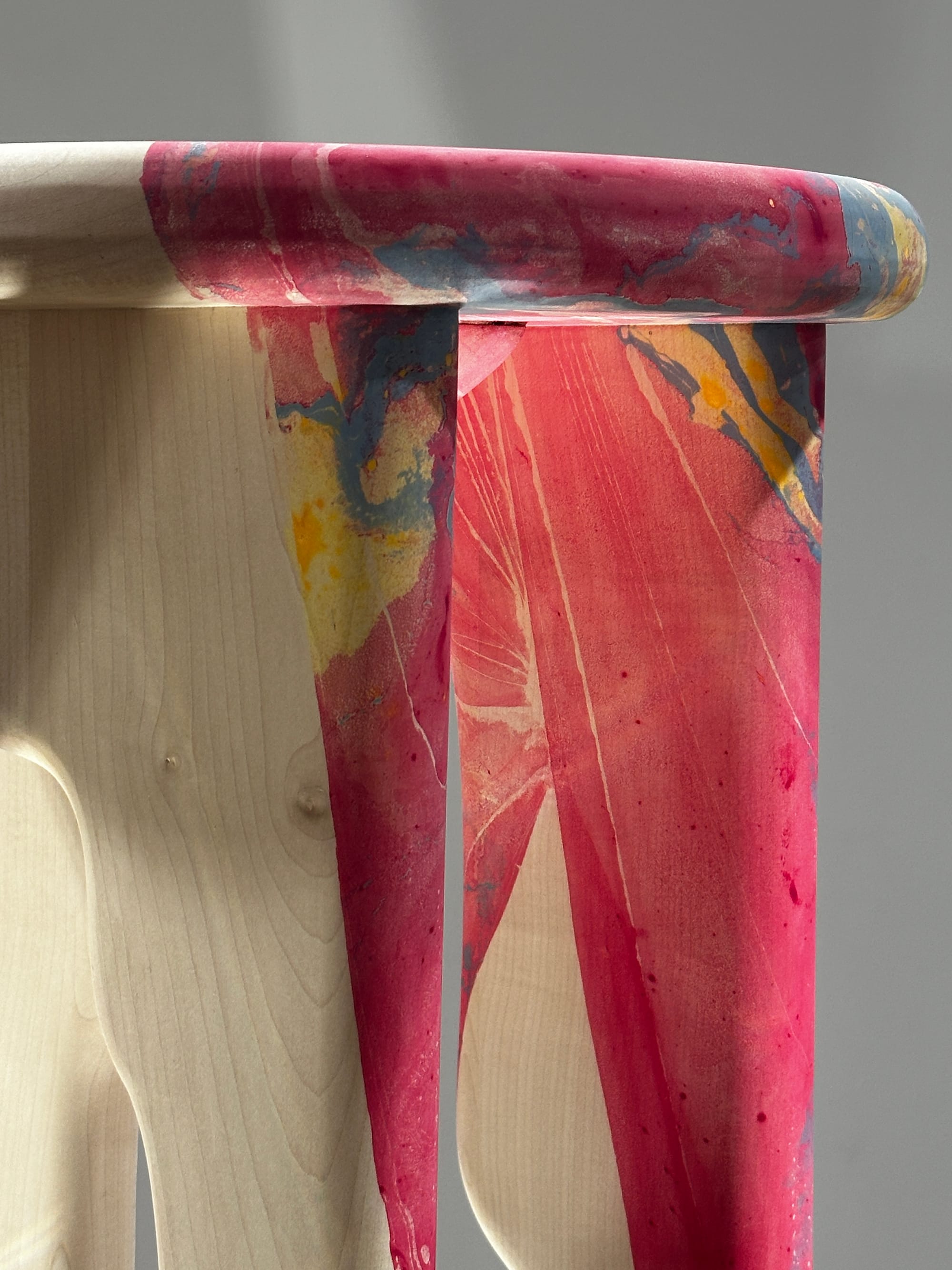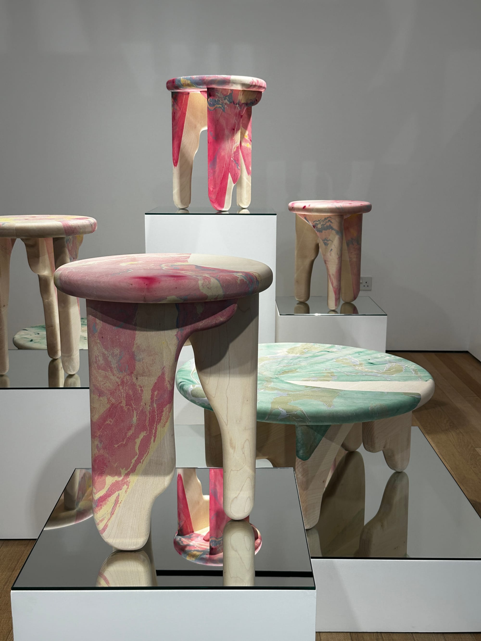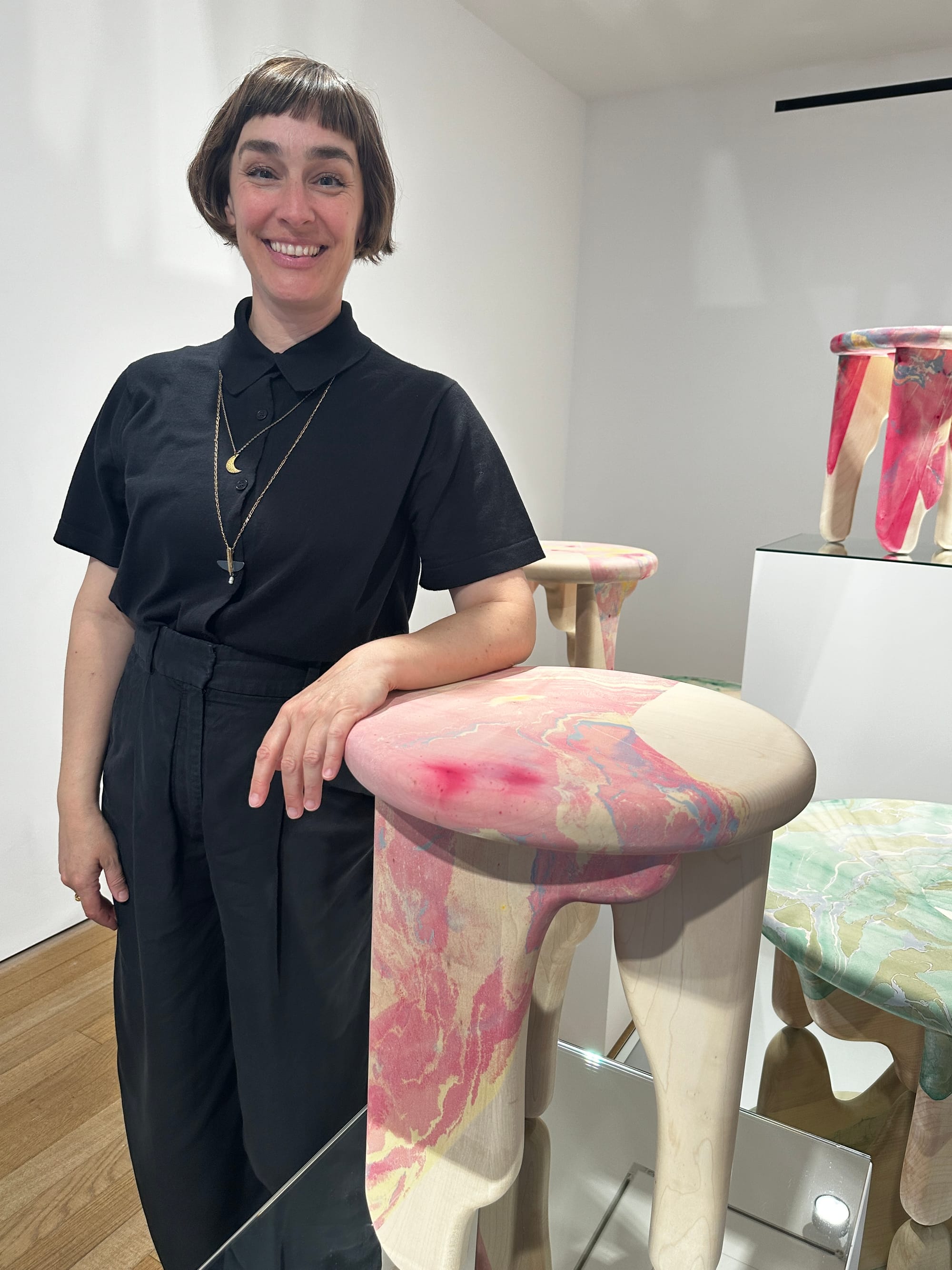 'Tides' is a collection of marbled wood tables designed collaboratively by Brogan Cox and multidisciplinary artist Nat Maks. The two female makers paired Maks's ink marbling with Brogan Cox's contemporary woodworking resulting in sculptural sycamore tables inspired by nature's coastal rhythms in Margate, England.