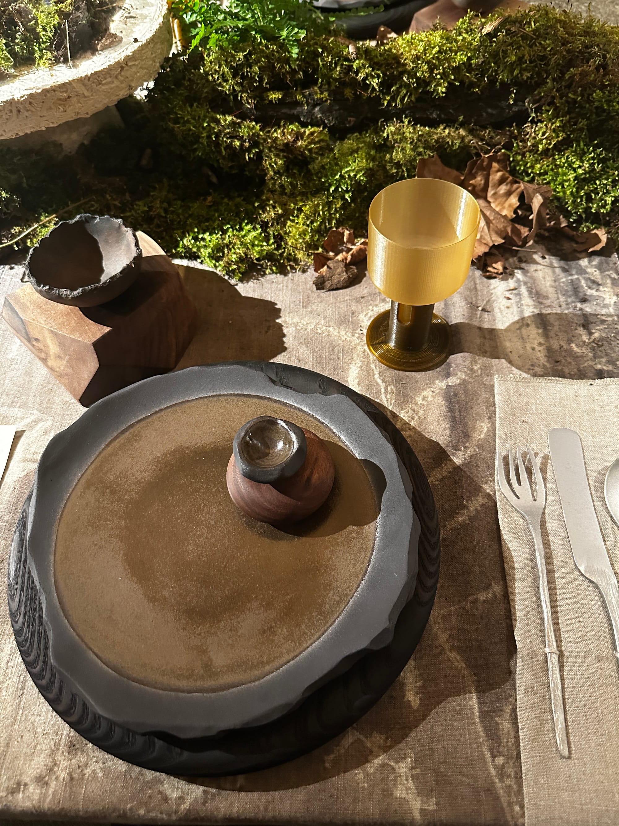 The ROOTS Exhibition, part of 'Masterly: The Dutch at Milan Design Week', was held at Palazzo Giureconsulti. Curated by Simone van Es, the exhibition emphasized environmental issues and celebrated the intrinsic beauty of the earth. Artists and designers explored bio-based materials – utilizing waste materials like horse manure, algae, mushrooms, and more – to develop circular solutions.