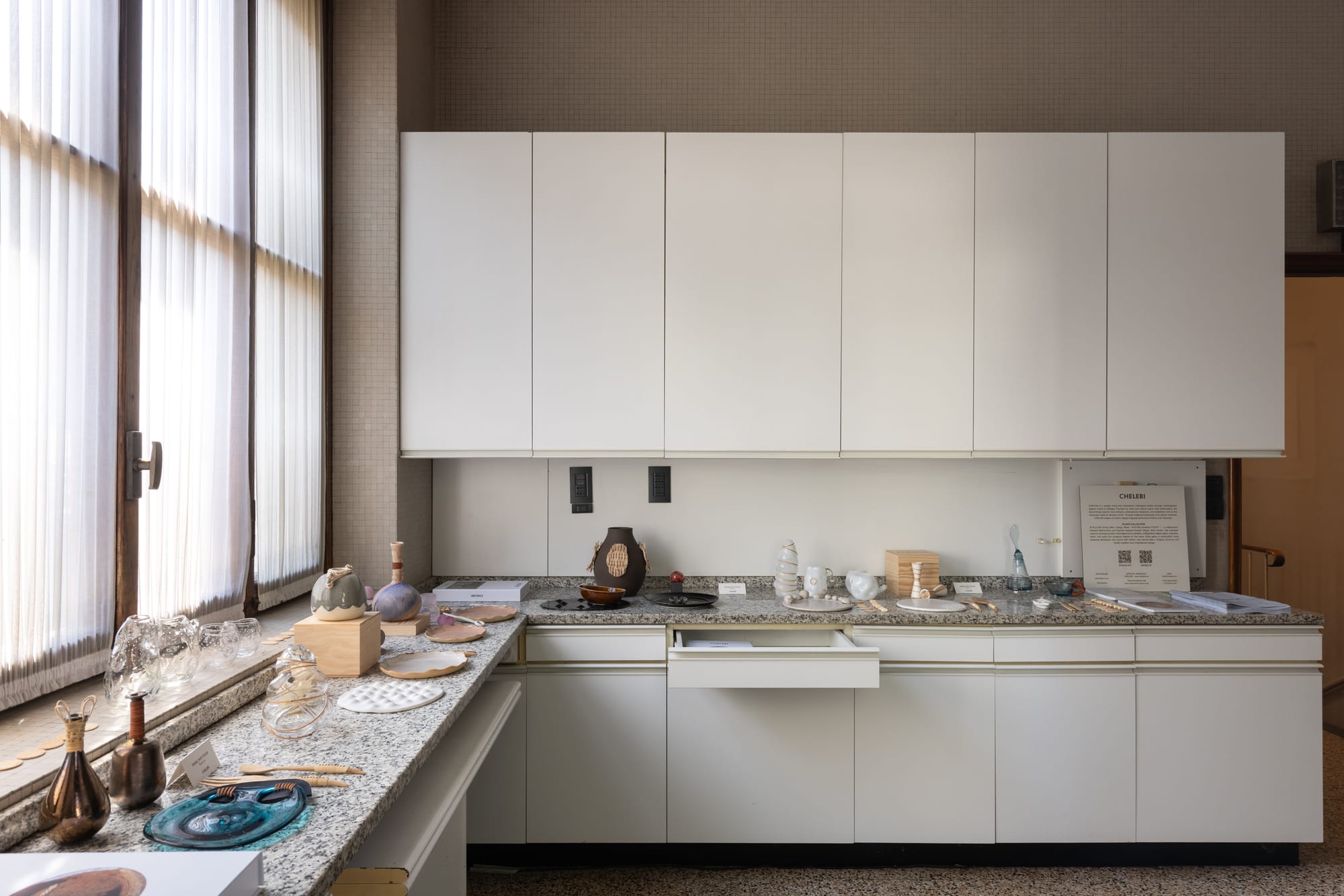 CHELEBI presented ‘PLAITE’ at Alcova during Milan Design Week transforming the kitchen at Villa Borsani. Created by Aida Mahmudova, founder of the Azerbaijani brand CHELEBI, and Spanish designer Natalia Ortega of Worn Studio, the collection explored weaving "as a technique and a language". Each sculptural piece for kitchen and home was designed to unite materials from blown glass, ceramics, porcelain, wood, and metal, to bound in leather and natural fibers. Crafted by artisans using age-old techniques, the collection captured the dialogue between structure and fluidity, heritage and reinvention.