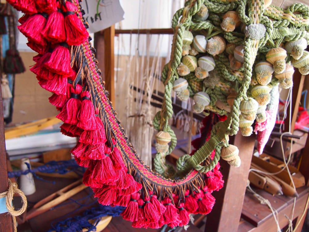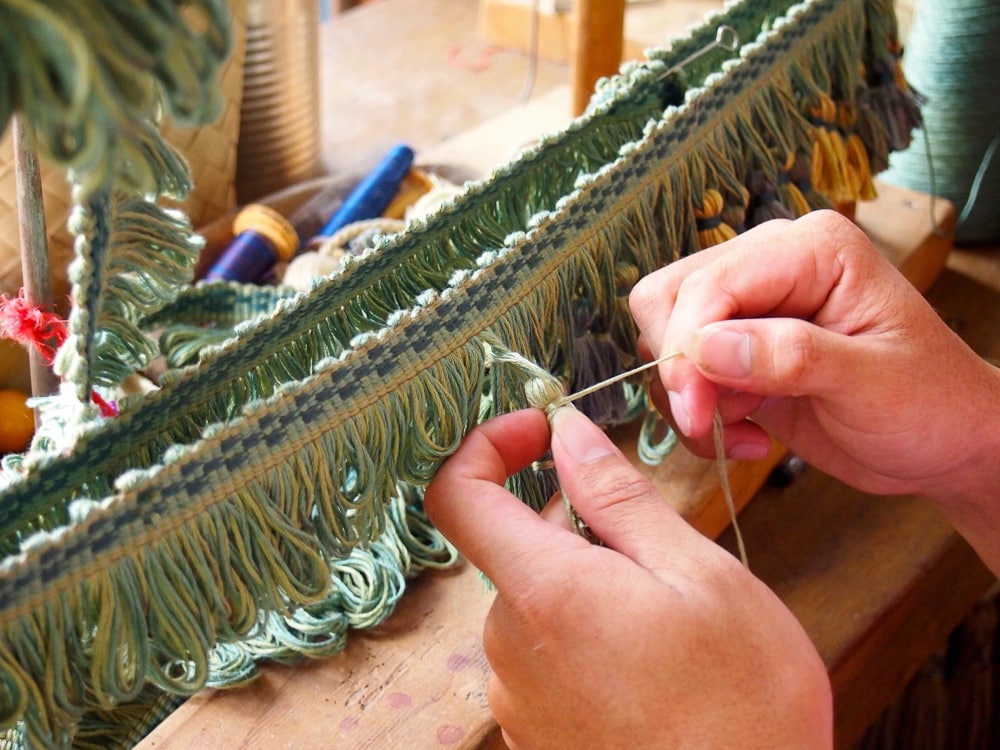 For the most part though, passementerie is extremely time and resource-intensive. One meter of braiding takes about 20 minutes to finish, while twisted rope requires up to 30 meters of raw material to yield just 10 metres of product. Two people working full-time over the course of a day can produce between six and ten meters of bullion fringing.