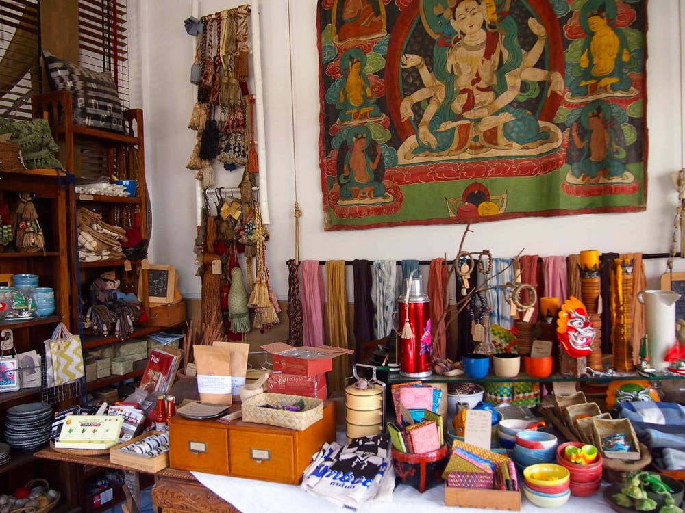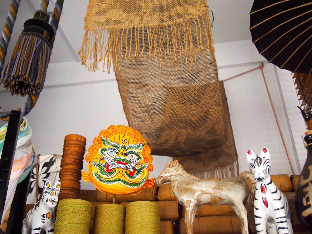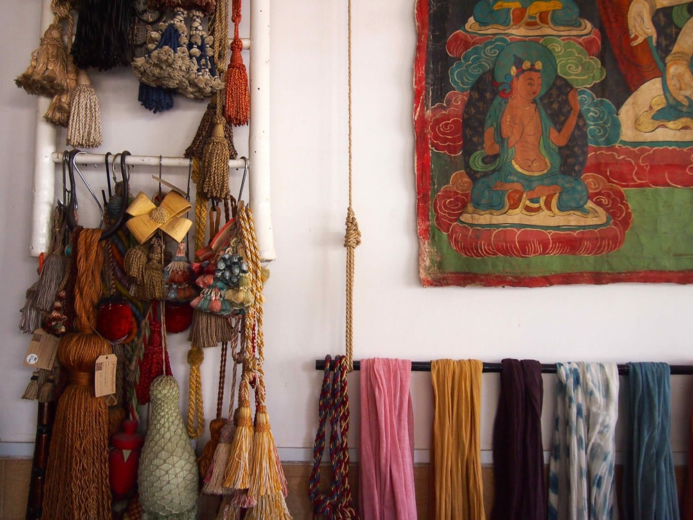 Like jungle vines, tangles of rope, tassels and ornate braiding dress every corner of Bric-a-Brac – some original designs, others antique pieces. In the beginning, the space was supposed to be a studio but as the retail side of Morrison’s project took over and he started adding local labels such as Penh Lenh to his offerings, most of his equipment moved upstairs. A single 12-heddle loom and workbench are still set against the shop’s front window.
