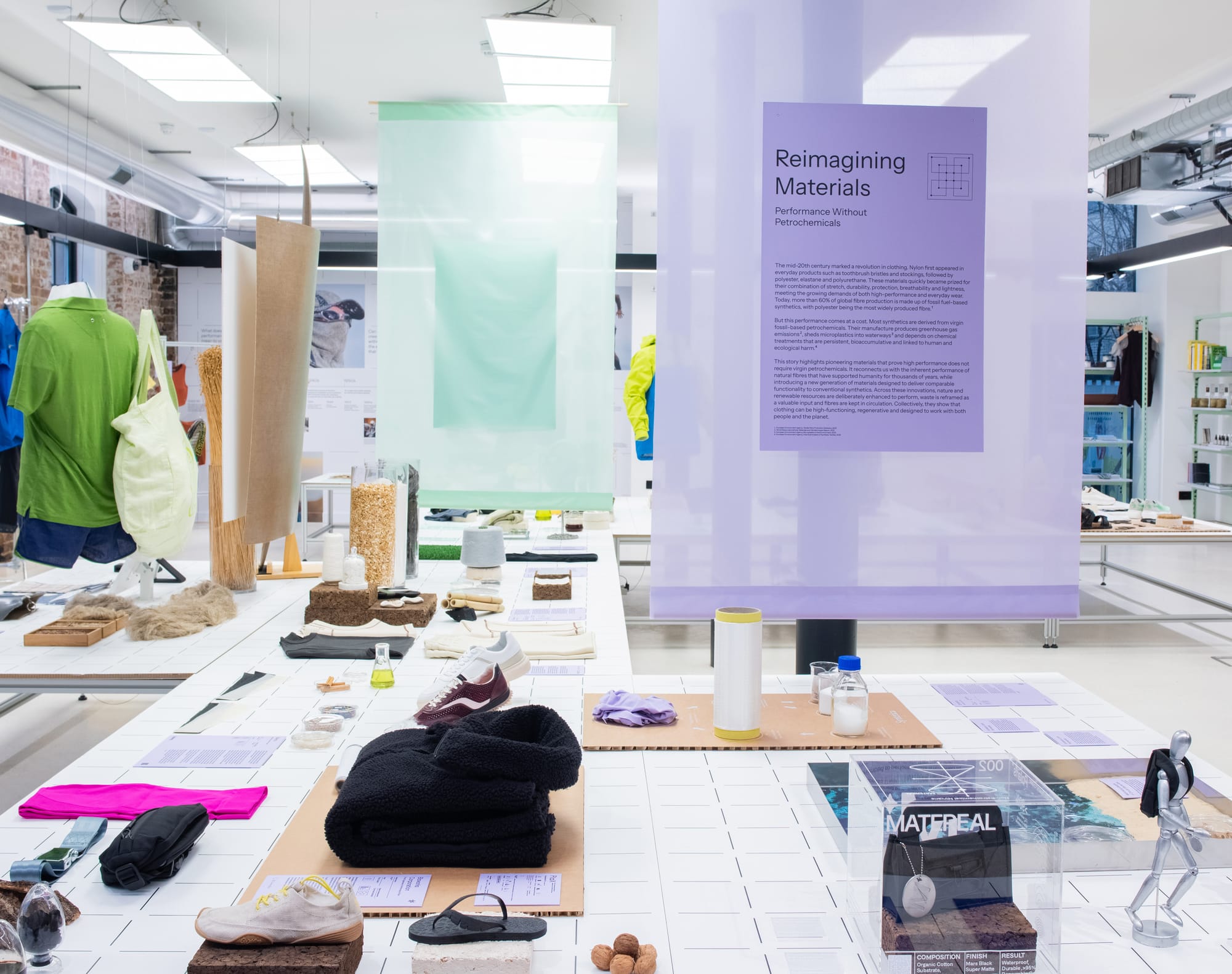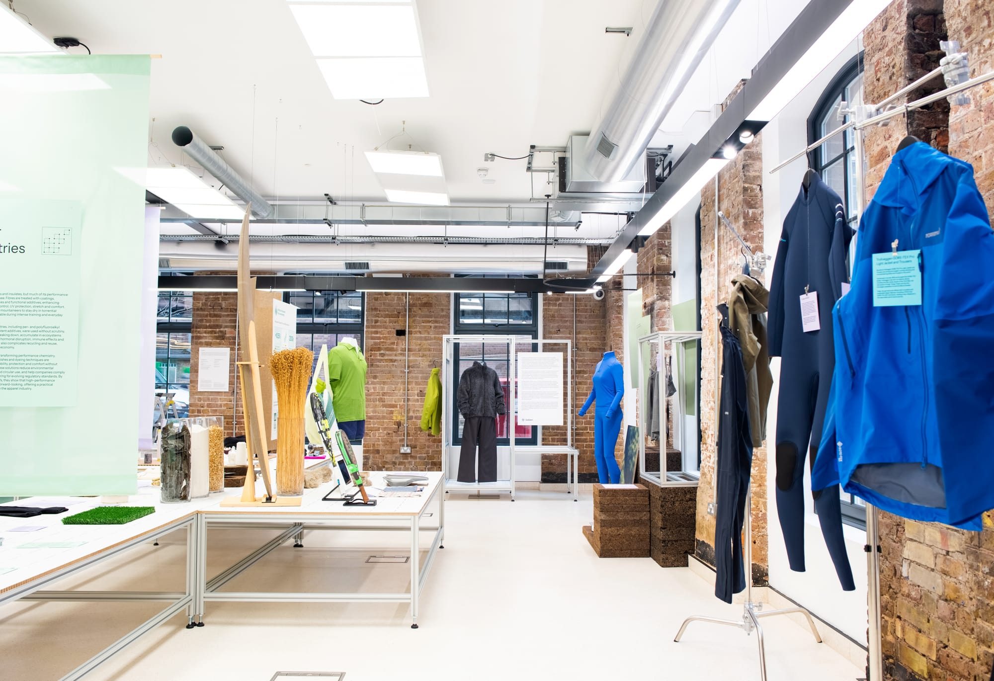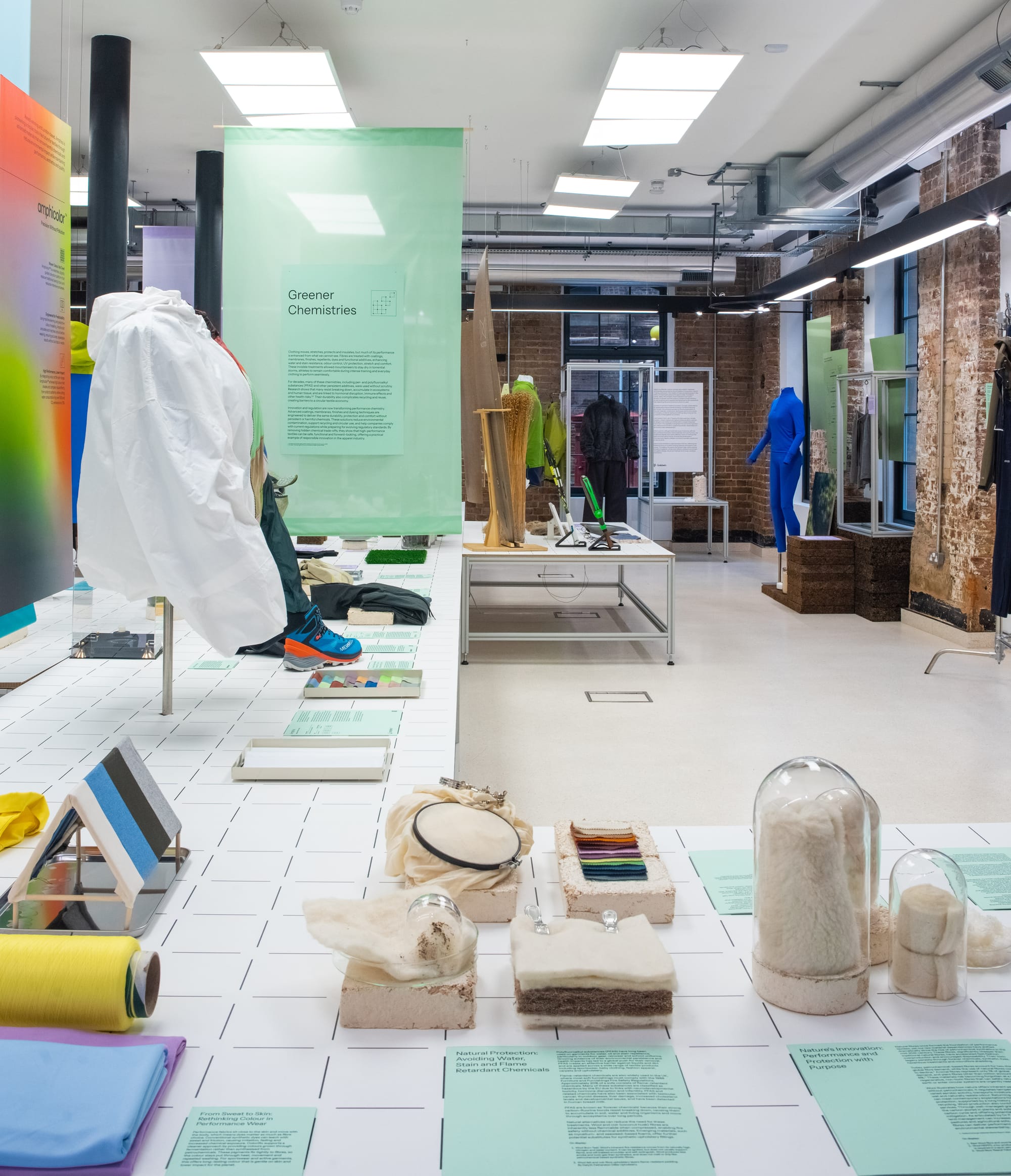 A new exhibition in London makes the case that the future of activewear will be shaped not just by performance, but by cleaner, innovative materials and finishes. Performance Without Toxicity is open at The Mills Fabrica's innovation gallery in King's Cross through June 26, 2026 and gathers a wide coalition of material scientists, outdoor brands, biotech start-ups, and footwear innovators under one roof.