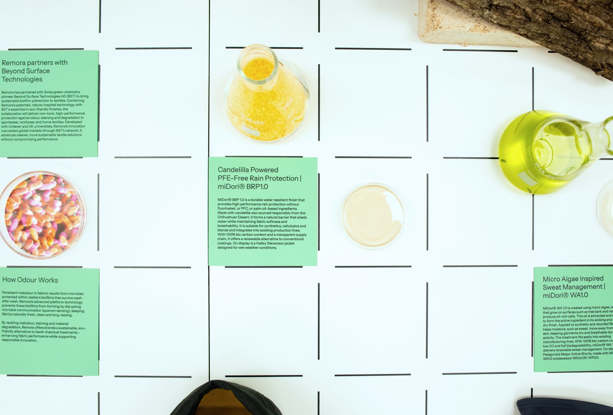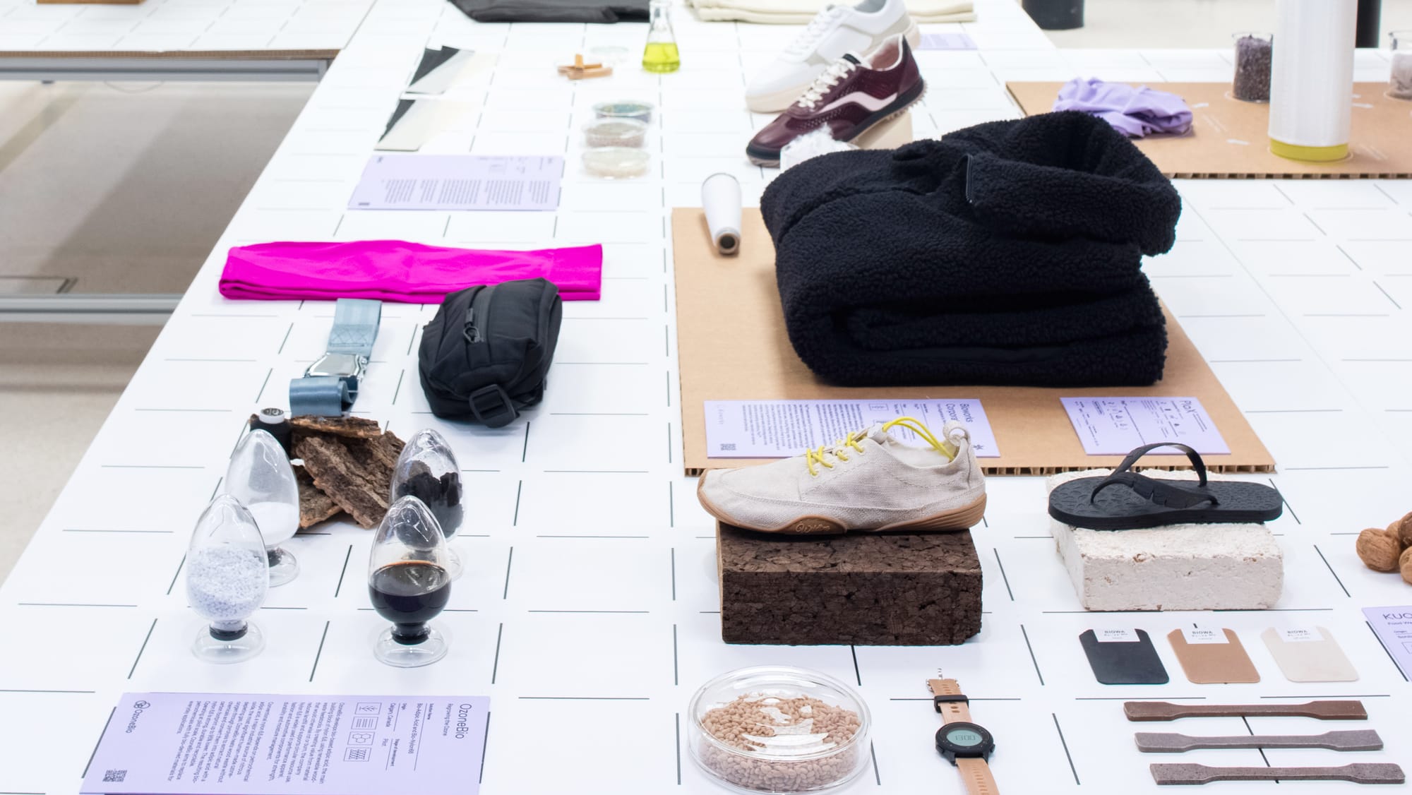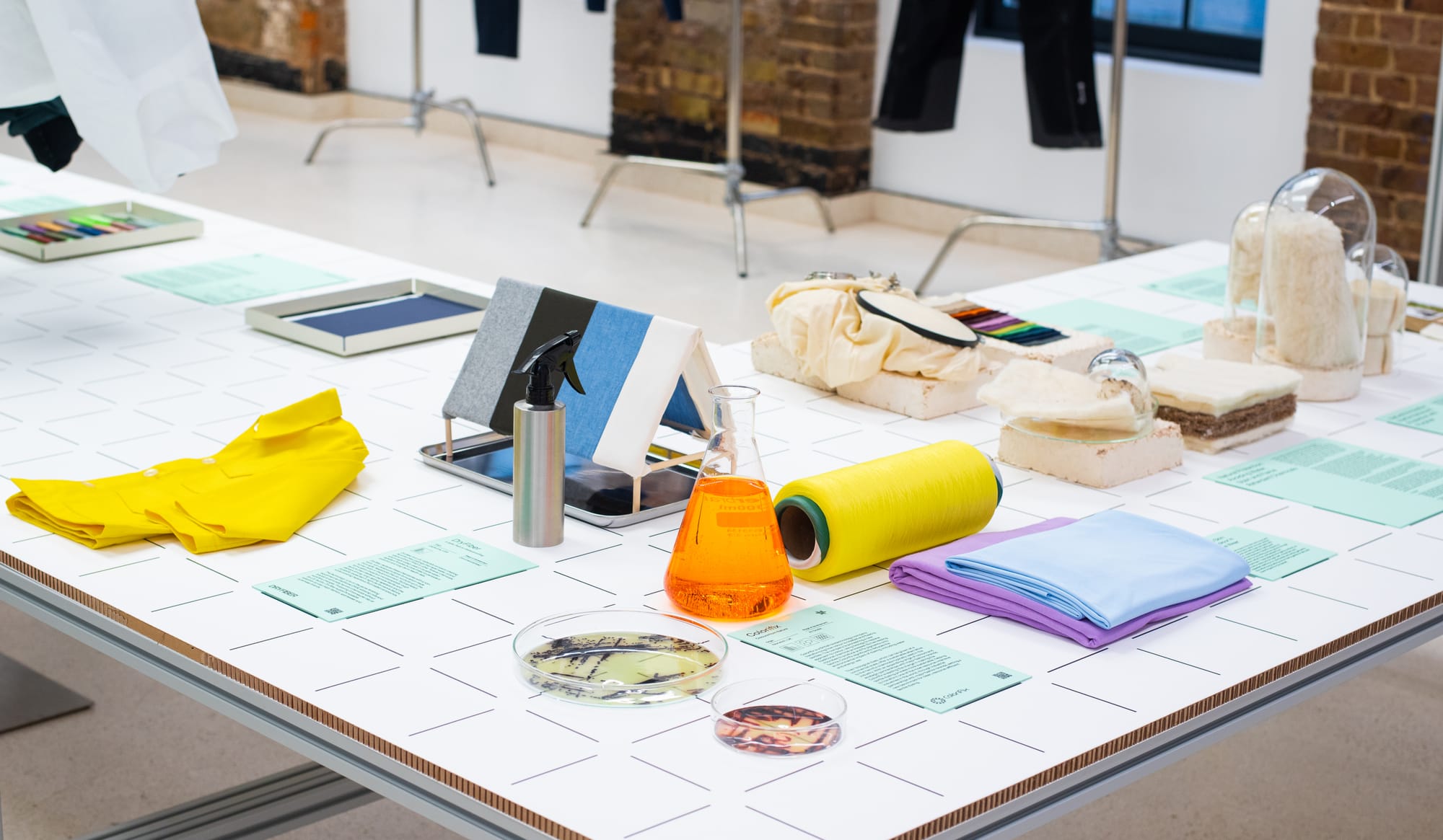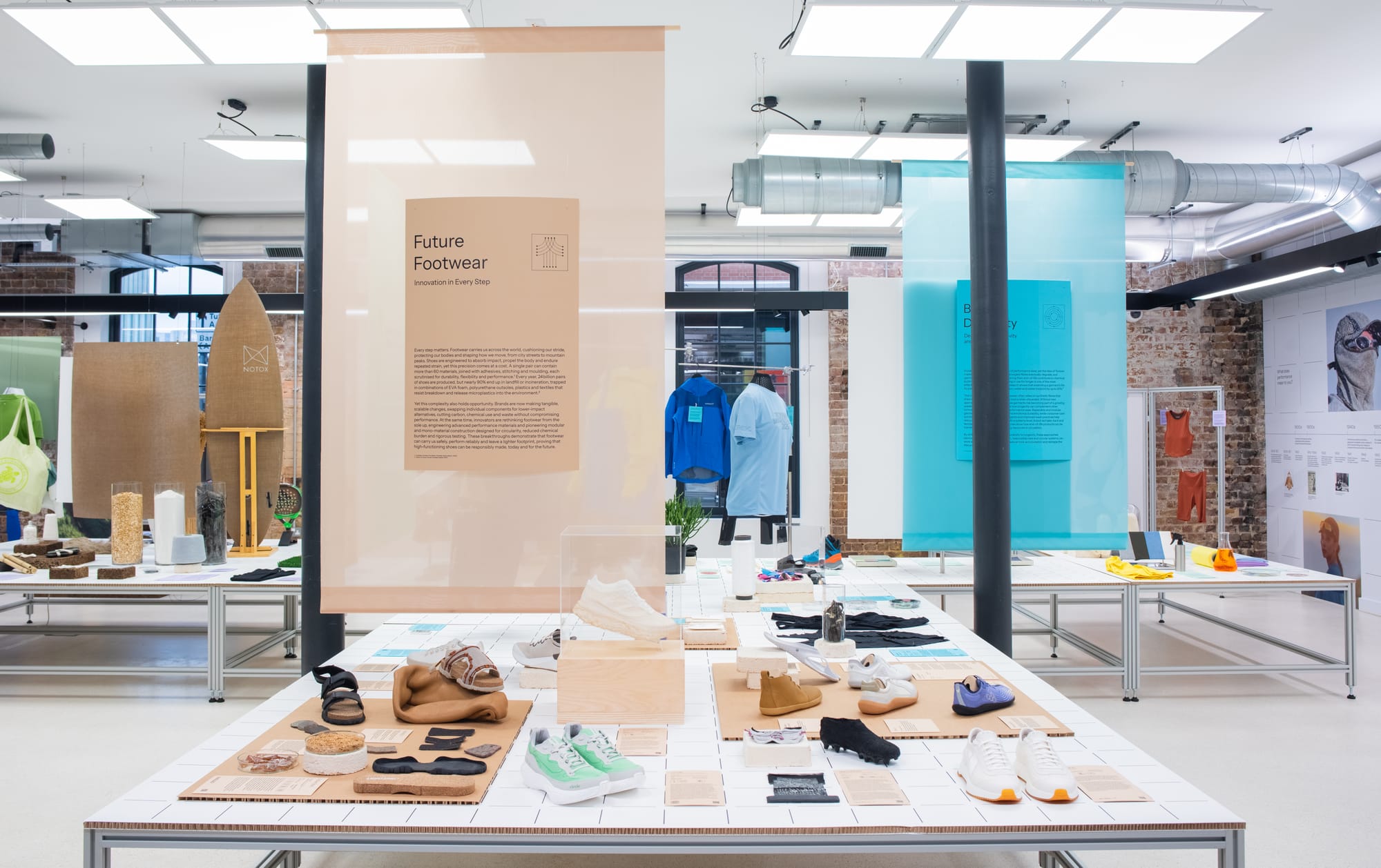 A new exhibition in London makes the case that the future of activewear will be shaped not just by performance, but by cleaner, innovative materials and finishes. Performance Without Toxicity is open at The Mills Fabrica's innovation gallery in King's Cross through June 26, 2026 and gathers a wide coalition of material scientists, outdoor brands, biotech start-ups, and footwear innovators under one roof.
