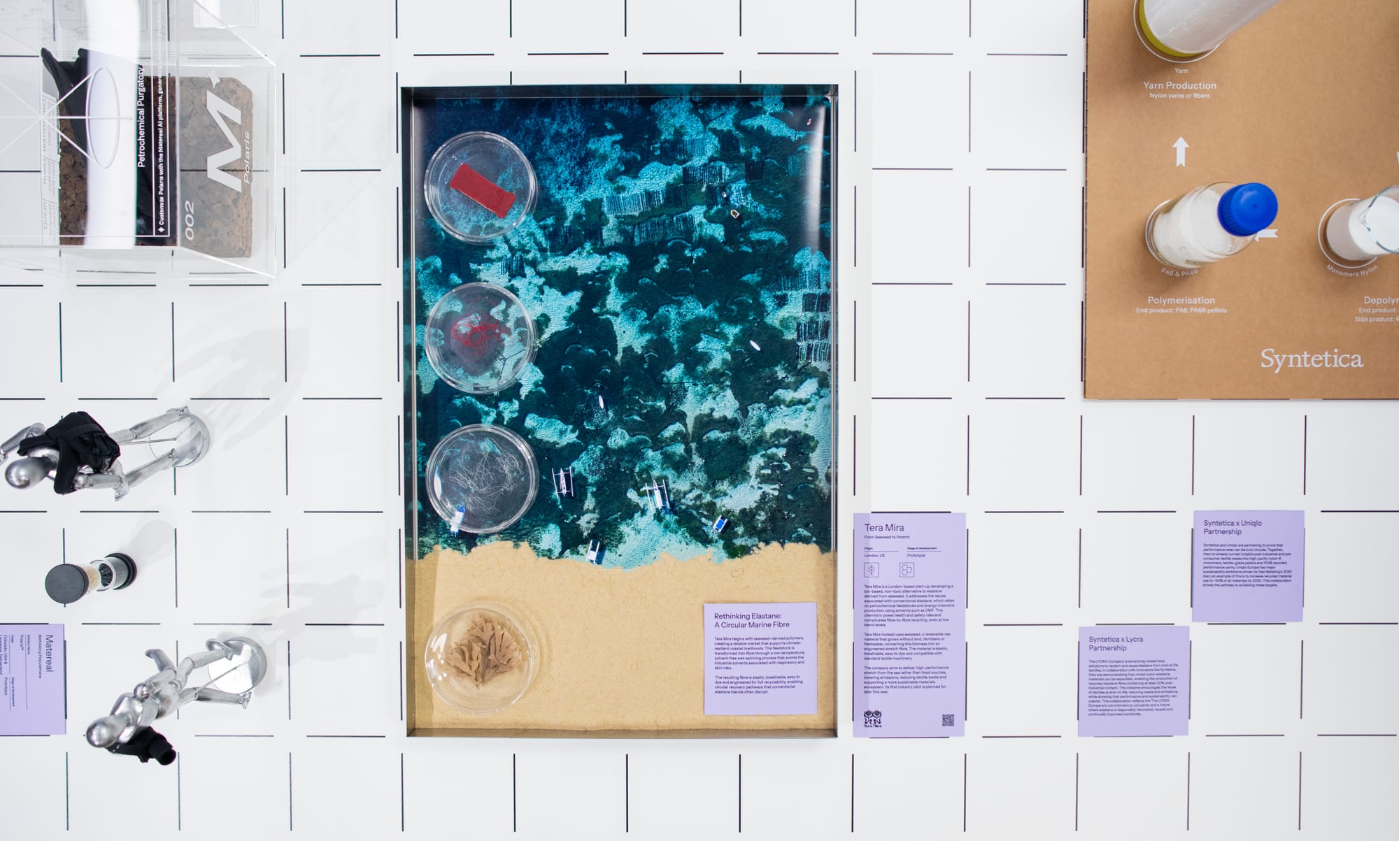Tera Mira is a London start-up developing a bio-based, non-toxic alternative to elastane derived from seaweed. It addresses the issues associated with conventional elastane, which relies on petrochemical feedstocks and energy-intensive production using solvents such as DMF. This chemistry poses health and safety risks and complicates fiber-to-fiber recycling, even at low blend levels.