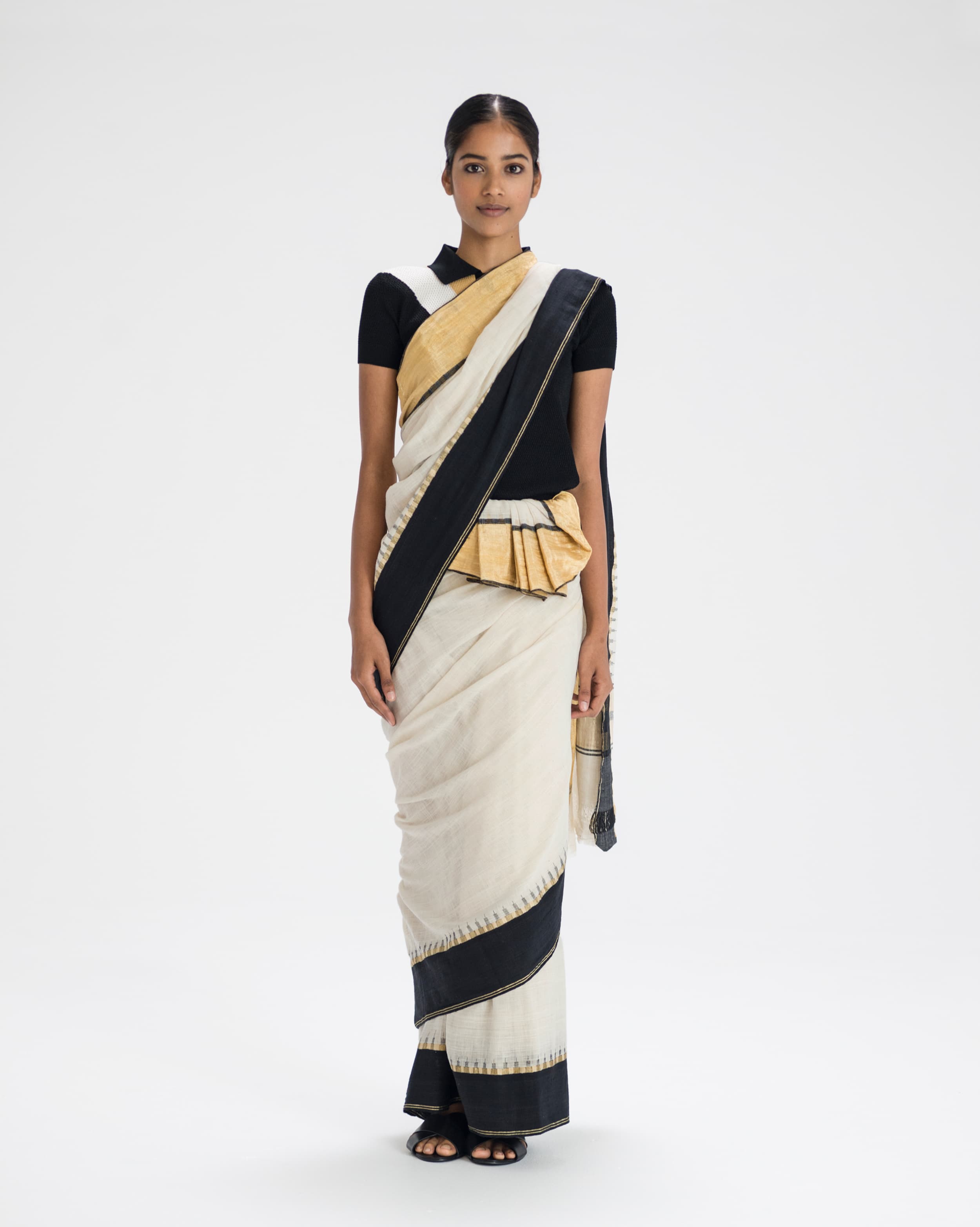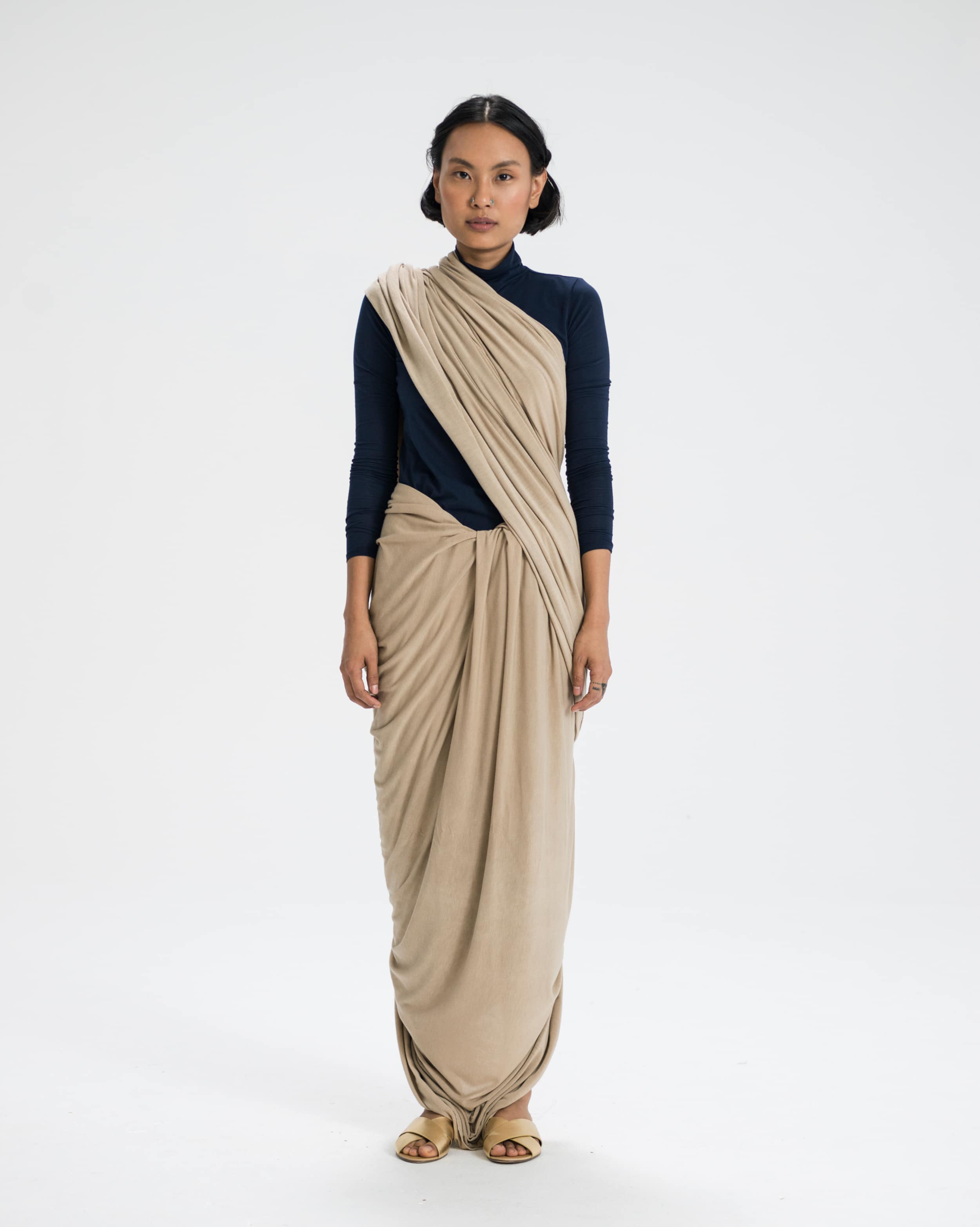 Then, on top of it, we feel like there's one correct way of wearing it and that's where this project took hold — in the sense that we impose this rigidity on a fluid garment, quite literally. If you ask most anyone to draw a sari, their images would probably look the same. We have a huge opportunity to address a way forward through looking at the past.
