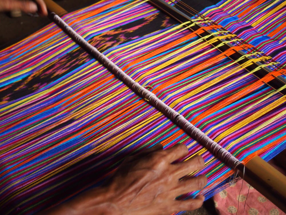 Knowing that I’m probably the only malai (foreigner) to ever step inside these walls, a small audience quickly gathers, all eyes locked on the viewfinder of my digital camera. A young boy pulls lengths of timber from underneath a raised platform in one corner of the room, being careful not to wake the newborn baby sleeping above, and Maria starts to assemble her loom.