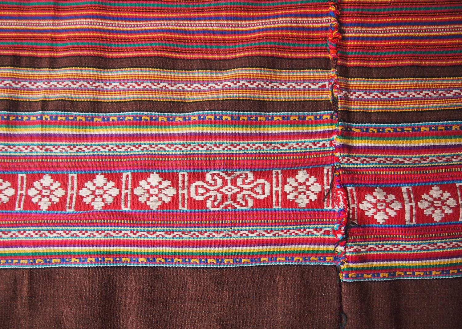 Stepping inside Mana Maria’s tiny tin-clad house for the first time, the cloth she plucks from a safe hiding place to show me seems all the more extravagant in color and scale for the earthen, cramped interior of her home. Chaperoned by a few staff from the local weaving co-op, Maria has invited me inside for a demonstration.